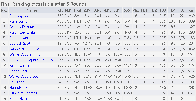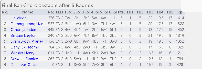 Full results can be found on www.chess-results.com (search for Hampshire Junior Open 2025).