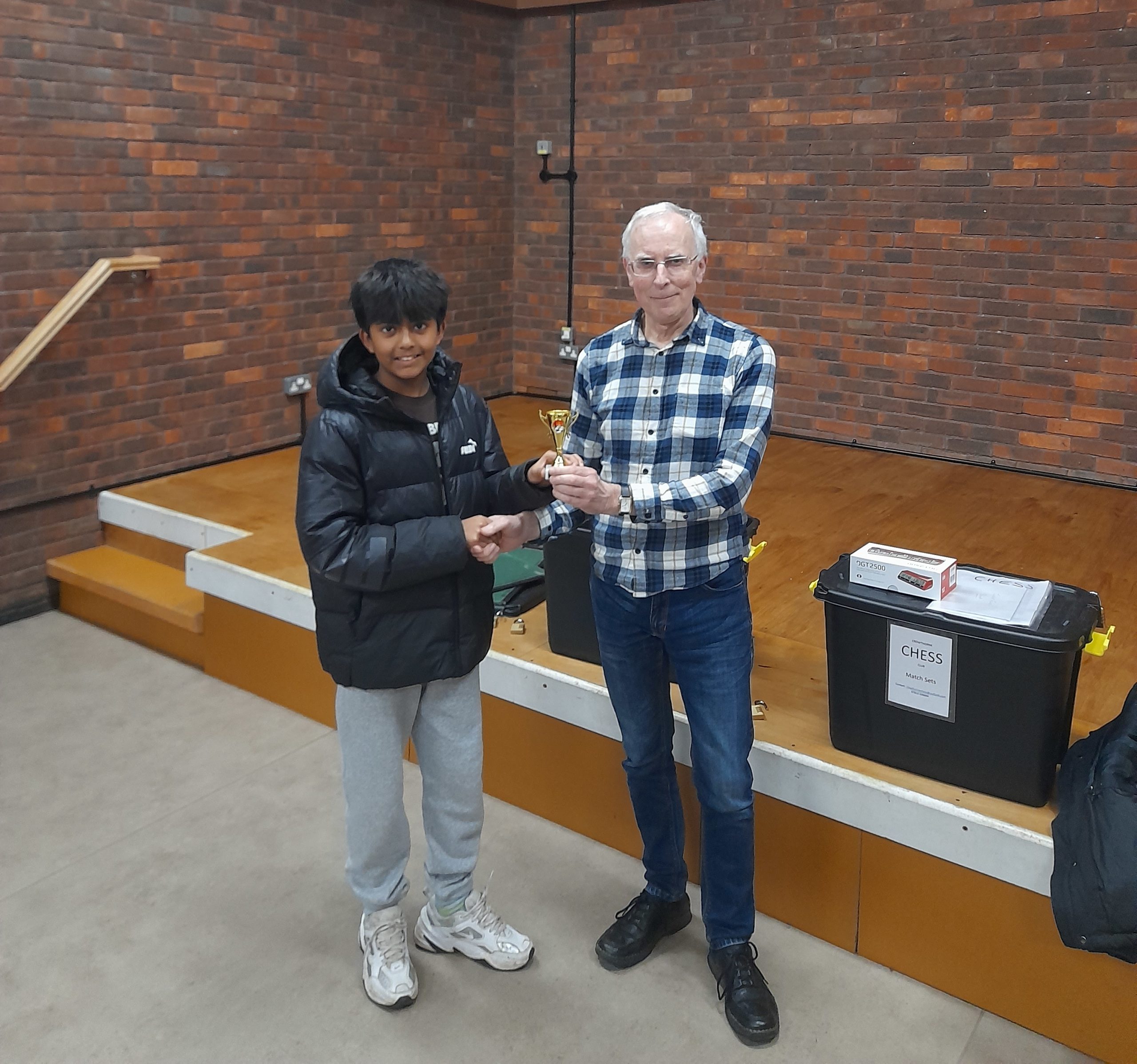The winner, once again, was Paul Cooksey on 5/5, though not without a closely fought battle with Ewan Wilson, a strong Reading player and friend of Harriet’s parents. This puts Paul’s name on the trophy for a second consecutive year.